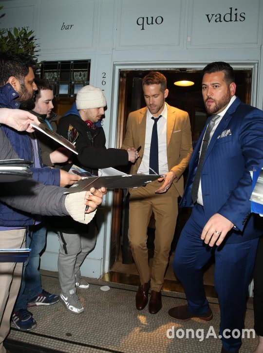 이날 라이언 레이놀즈는 식당 입구에 나오자마자 수많은 팬들의 사인 세례를 받으며 ‘데드풀’의 위력을 과시했다.