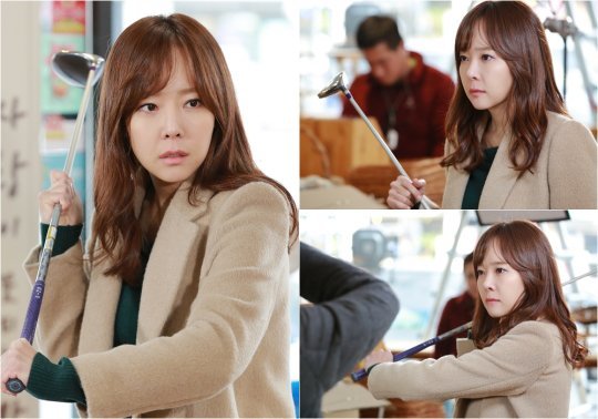 1일 공개된 사진에서 소유진은 금방이라도 휘두를 듯 골프채를 위협적으로 치켜들고 있다. 상대의 궁색한 변명 따위엔 눈 하나 깜짝 않는 서늘한 표정에서는 비장미가 엿보인다. 또 다른 사진에서 소유진은 골프채를 꽉 움켜쥐고 가차없이 내려치기 직전이다.