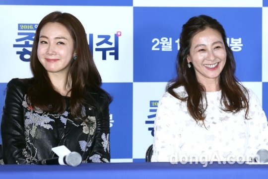 배우 최지우(왼쪽), 이미연이 3일 오후 서울 성동구 왕십리CGV에서 열린 영화 ‘좋아해줘’ 언론시사회에 참석해 기자간담회를 하고 있다.
