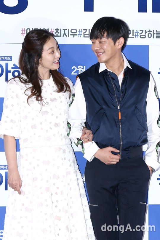배우 이미연(왼쪽), 유아인이 3일 오후 서울 성동구 왕십리CGV에서 열린 영화 ‘좋아해줘’ 언론시사회에 참석해 포토타임을 하고 있다.