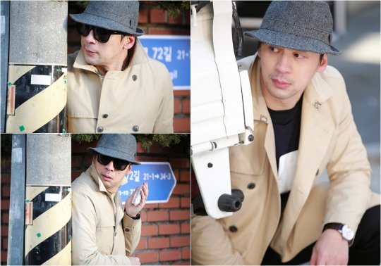 4일 공개된 사진 속 권오중은 중절모에 선글라스, 바바리코트를 입고 수상쩍은 분위기를 내고 있다. 옷깃까지 한껏 치켜세운 모양새가 스파이를 연상케하지만 추위를 못 참고 핫팩을 부비는 어설픈 행동이 웃음을 자아낸다.