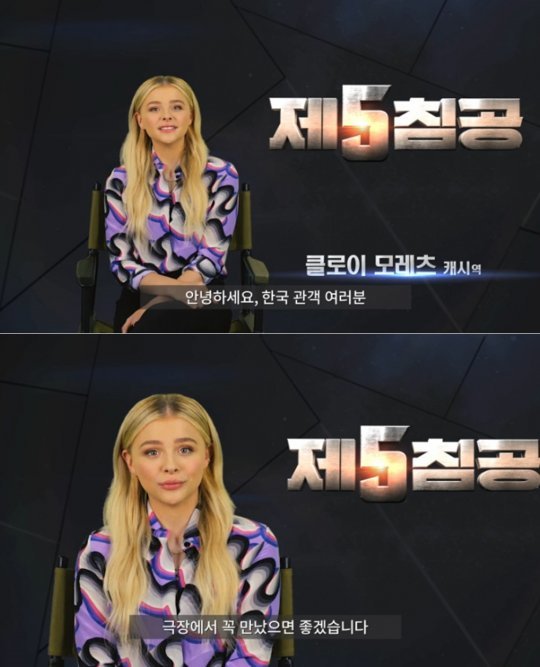 지난 국내 내한 시 tvN ‘SNL 코리아’ 출연으로 한국어 사투리 실력을 선보인 그녀가 이번에는 한국팬들을 위해 유창한 한국어로 인사말을 전해와 팬들을 설레게 하고 있다. 이어지는 영상에서는 지구의 주인이 바뀔 수 있는 극한의 재난 속에서도 동생 ‘샘’을 보호하며 빠르게 대피하는 모습으로 보다 강인한 ‘캐시’의 매력을 선보인다. 클로이 모레츠는 자신의 캐릭터 ‘캐시’에 대해 “굉장히 평범하고 어디에서 흔하게 볼 수 있는 10대 소녀지만 엄청난 상황에 처하게 되었을 때 누구보다 강한 모습으로 변한다”고 설명해 캐릭터에 대한 애정과 자신감을 드러냈다.