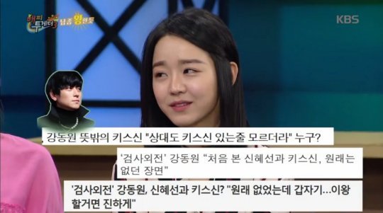 이날 방송에서 신혜선은 영화 ‘검사외전’에서 배우 강동원과 키스신을 언급하며 시선을 모았다.