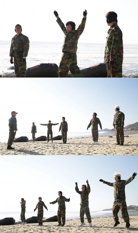 제작진에 따르면 출연자들의 단합을 위해 마련된 혹한기 훈련코스는 최고령자 송해가 열외하자마자 교관의 불호령과 함께 본격적으로 시작됐다.