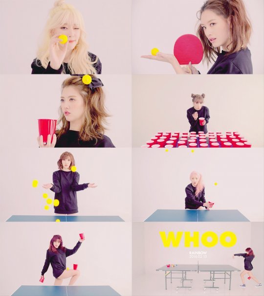 레인보우는 타이틀 곡 ‘Whoo(우)’를 통해 레인보우만의 밝고 건강한 이미지를 극대화 시킨 것으로 알려졌으며 레인보우 7가지 컬러를 활용해 통통 튀는 색감을 영상에 담아 보는 이들에게 재미를 안겨줬다.