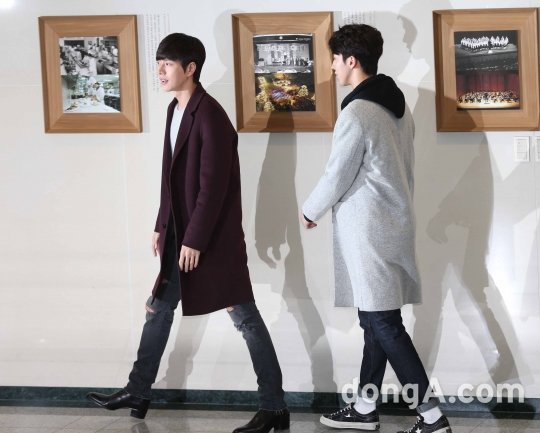 배우 박해진(왼쪽)과 남주혁이 12일 오후 서울 숙명여자대학교 백주년기념관에서 열린 프리허그 게릴라 이벤트에서 팬들과 즐거운 시간을 보내고 있다.