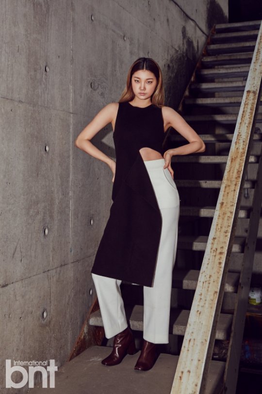 bnt와 김나래가 함께한 화보는 총 3가지 콘셉트로 진행됐다. 첫 번째 콘셉트는 미니멀한 의상으로 정적인 무드에서 진행되었다.