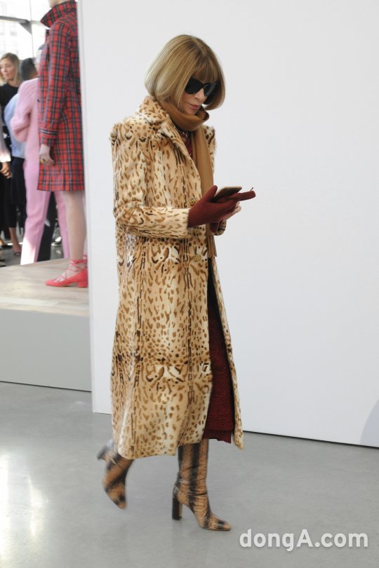 패션계 모피 애호가로 유명한 안나 윈투어는 이날도 어김없이 모피 롱코트를 입고 등장했다.