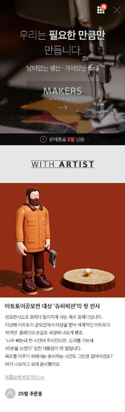 카카오는 16일 ‘메이커스 위드 카카오’ 서비스를 시작했다. 4800만명의 카카오톡 이용자 기반으로 제조회사가 먼저 샘플을 보여준 뒤 이용자들의 주문을 받아 생산하는 방식이다. 운영 초기엔 판매 상품이 일주일 단위로 변경된다. 매주 화요일 오전 10시 모바일 웹(makers.kakao.com)에 새 상품을 공개한다. 주문과 함께 결제가 이뤄지며 일주일 간 최소생산량 이상으로 주문 접수된 상품에 대해서만 제작에 들어간다. 결제는 카카오페이를 비롯해 간편결제와 신용카드로 할 수 있다. 상품 제작이 확정되면 카카오가 제품 생산을 위한 비용을 제조업체에 미리 지급한다. 가방과 의류 등 패브릭 제품과 머그컵, 아트토이 피규어까지 다양한 상품군을 선보일 예정이다. 현재까지 12개 브랜드와 10명의 아티스트, 7곳의 제조업체가 참여했다. 앞으로 생산 공장의 협력 범위를 확대할 예정이다. 카카오는 소비자의 경우 재고비용을 없앤 가격으로 가치 있는 상품을 만나 볼 수 있으며, 중국이나 동남아시아로 일감을 뺏긴 서울 창신동, 신정동 등지의 제조 공장은 고용 및 수익 안정의 효과를 볼 것으로 기대하고 있다.
