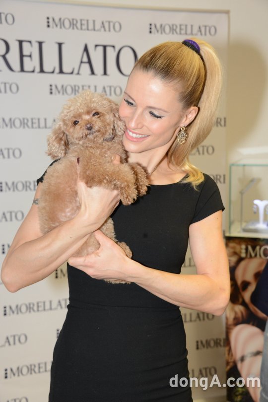 미첼 훈지케가 그녀의 귀여운 반려견을 공개했다.