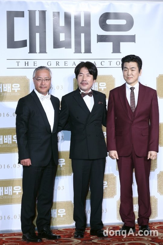 배우 이경영(왼쪽부터), 오달수, 윤제문이 17일 오후 서울 광진구 건대입구 롯데시네마에서 열린 영화 ‘대배우’ 제작발표회에 참석해 포토타임을 하고 있다.