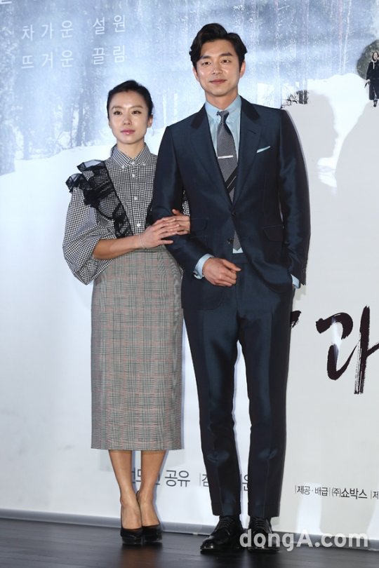 배우 전도연(왼쪽), 공유가 17일 오후 서울 중구 동대문 메가박스에서 열린 영화 ‘남과 여’언론시사회에 참석해 포토타임을 하고 있다.