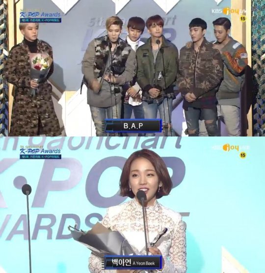 이어 남자부문을 수상한 B.A.P는 “앞으로도 케이팝을 알릴 수 있는 좋은 팀이 되겠다”라고 말했다.
