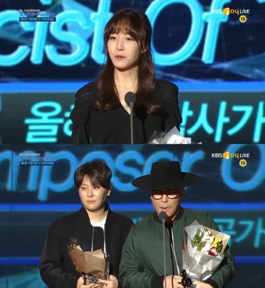 김이나와 블랙아이드필승이 가온차트 올해의 작사, 작곡가상을 수상했다.