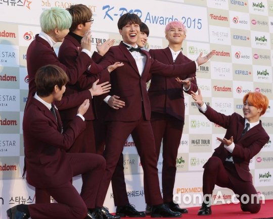 그룹 방탄소년단이 17일 오후 서울 올림픽공원 올림픽홀에서 열린 제5회 가온차트 K-팝 어워드(K-POP AWARDS) 레드카펫 행사에 참석하고 있다.