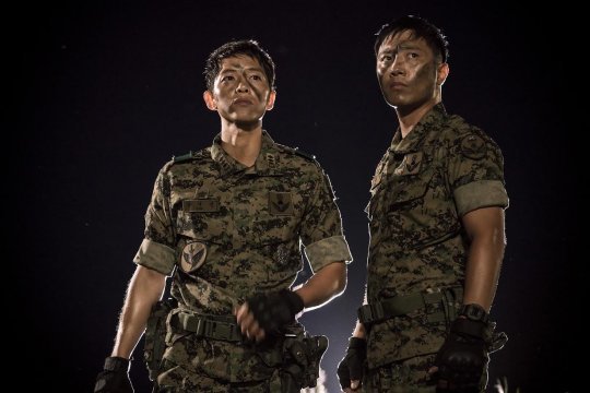 KBS2 새 수목드라마 ‘태양의 후예’가 ‘남남’ 케미가 돋보이는 송중기와 진구의 軍브로맨스 스틸컷을 공개했다. 검은 위장크림으로도 가릴 수 없는 비주얼과 남성미가 강렬하다.