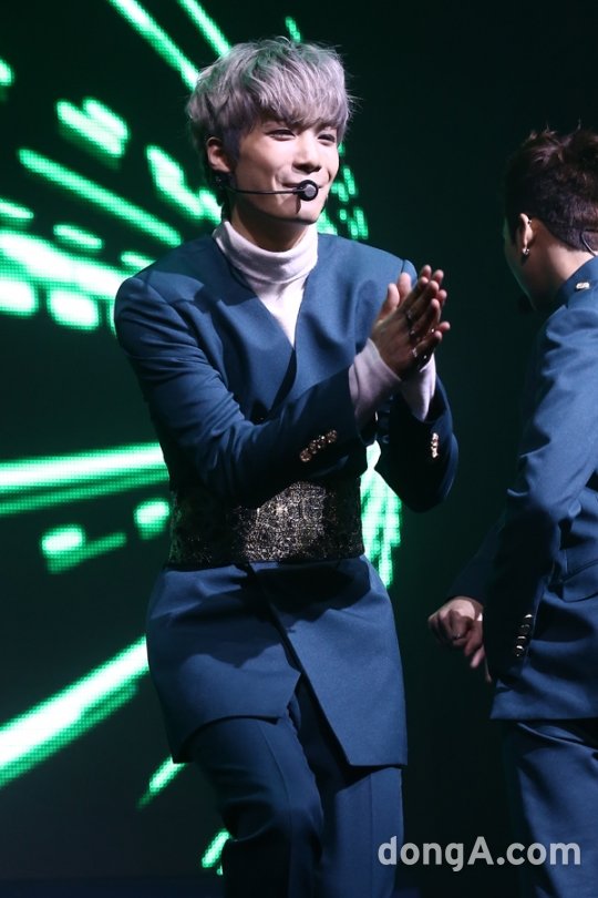 그룹 뉴이스트가 18일 오후 서울 마포구 예스24 무브홀에서 열린 네번째 미니앨번 ‘Q IS’ 쇼케이스에 참석해 공연을 하고 있다.
