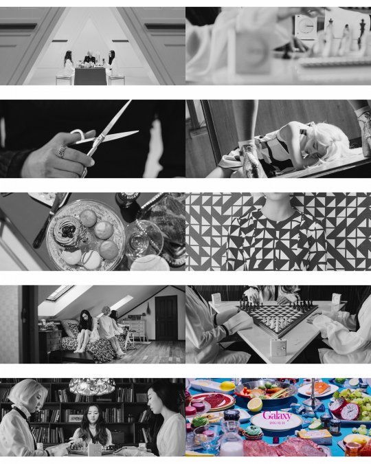 또한 여러 가지 모양을 가진 의문의 가위들과 삼각형 모양을 이루는 체스 판, 여기에 영상 말미 화려한 색감의 음식들이 놓여있는 테이블이 교차적으로 그려지며 시각적인 화려함으로 보는 이들의 시선을 집중시킨다.