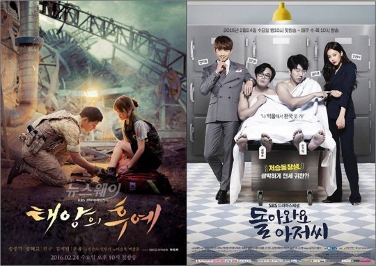 ‘리멤버’와 ‘장사의 신’ 후속으로 오는 24일 첫 방송을 앞둔 KBS 2TV ‘태양의 후예’와 SBS ‘돌아와요 아저씨’는 사전 기대감 속에 4위와 5위에 올랐다.