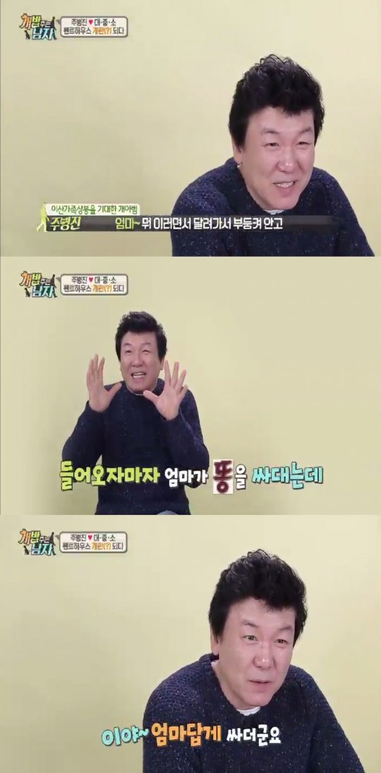 감동적인 가족 상봉의 순간을 상상하며 기대에 부풀어올라있던 주병진은 콩떡이 집안에 발을 들인 순간부터 이곳저곳 냄새를 맡으며 무언가를 찾는 듯 하는 행동을 보고 이내 공포에 떨었다.