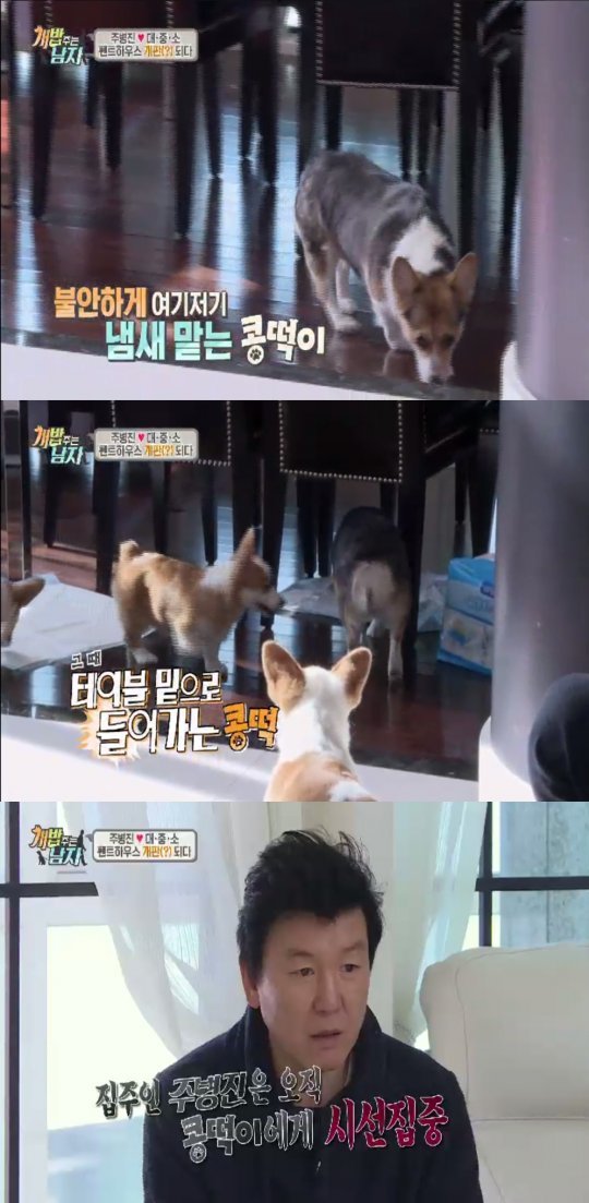 이후 즐겁게 대화를 나누던 다른 견주들과 달리 주병진은 한시도 콩떡에게서 눈을 떼지 못하며 안절부절못하는 모습을 보였고, 결국 주병진의 예상대로 콩떡은 식탁 밑에 자리 잡아 대변을 보기 시작해 주병진을 좌절케 했다.