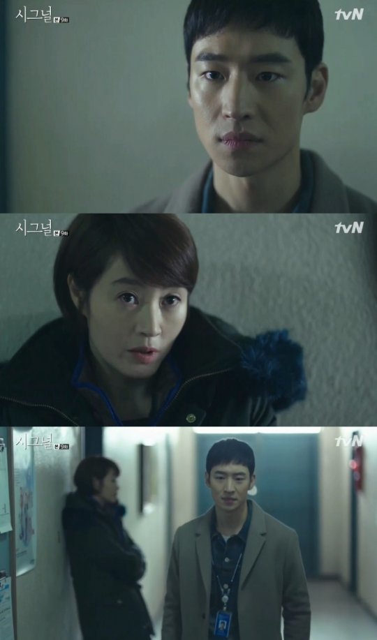 19일 tvN 금토드라마 '시그널' 9회에선 안치수(정해균)을 이재한 형사(조진웅) 살인자로 의심하는 박해영(이제훈)의 모습이 그려졌다.