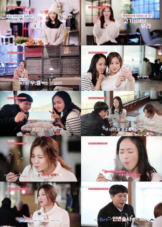 촬영장에 먼저 도착해 김민정을 기다리던 유라는 “여자판 ‘우결’ 찍는 것 같은 느낌이다. 남편 만나기 전 보다 더 두근거린다”라며 설레는 마음을 감추지 못했다. 새 MC가 된 소감에 대해 유라는 “테로 MC가 됐다고 하니깐 친구들이 그 어떤 프로그램보다 부러워했다”며 기뻐했다. 유라는 또 “첫 촬영을 대비해 어제는 한끼에 10가지 음식을 먹었다. 내 위의 한계를 시험해 보고 싶었다”며 당찬 포부를 밝혔다. 김민정은 “제작진이 왜 이제서야 연락을 하셨나 했다”고 말하며 준비된 먹방 여신의 포스를 뽐냈다. 김민정은 유라에게 음식에 대한 다양한 상식을 친절히 알려주며 새로운 맛의 세계로 안내할 예정. 제작진에 따르면 김민정과 유라가 첫 촬영부터 가식 제로의 소탈한 모습을 선보이며 친자매 이상의 호흡을 자랑했다는 후문이다.