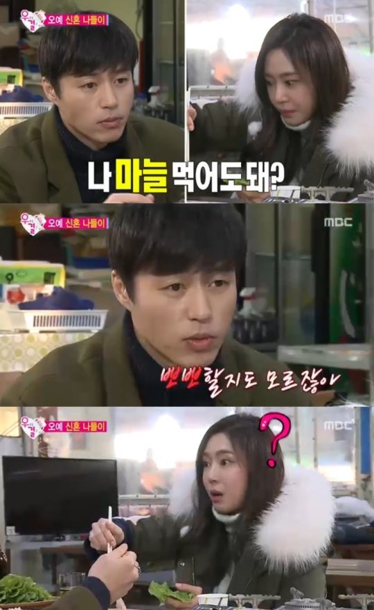 회를 먹던 오민석은 "나 마늘 먹어도 돼?"라고 말했고 강예원은 "왜? 아! 입냄새 날까봐?"라고 물었다.