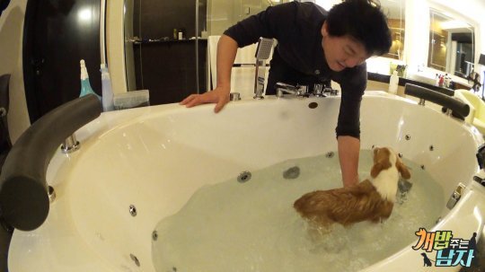 주병진이 반려견인 웰시코기 삼둥이 대중소를 위해 ‘삼둥이 전용 수영장’을 개장했다.