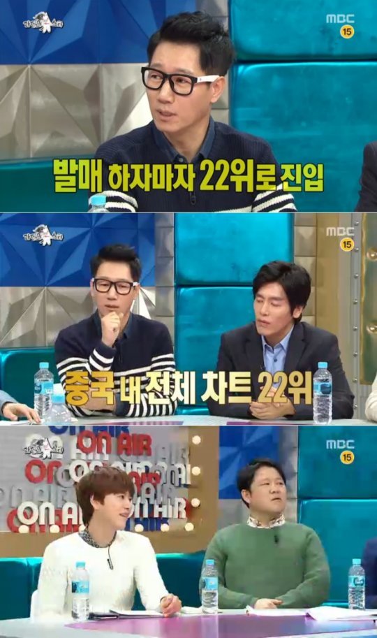 지석진은 24일 밤 방송된 MBC ‘황금어장-라디오스타’에서 “중국에서 노래를 냈다. 그런데 발표 첫날 중국 내 전체 차트에서 22위를 차지했다”고 밝혔다.
