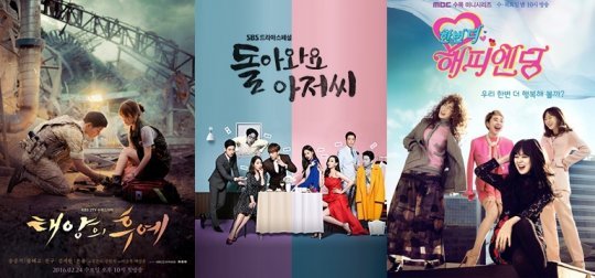 사진|KBS 2TV ‘태양의 후예’·SBS ‘돌아와요 아저씨’·MBC ‘한번 더 해피엔딩’