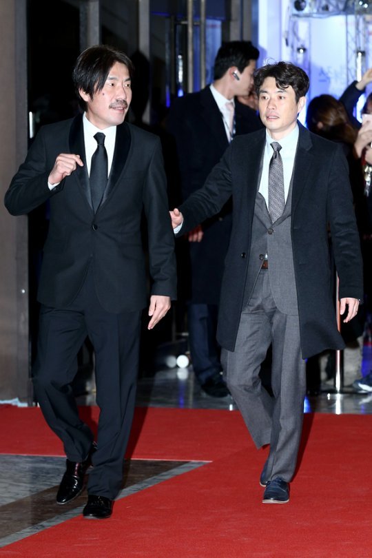 배우 오달수(왼쪽), 류승완 감독이 25일 오후 서울 광진구 유니버셜아트센터에서 열린 ‘맥스무비 최고의 영화상’ 시상식에 참석해 포토타임을 하고 있다.