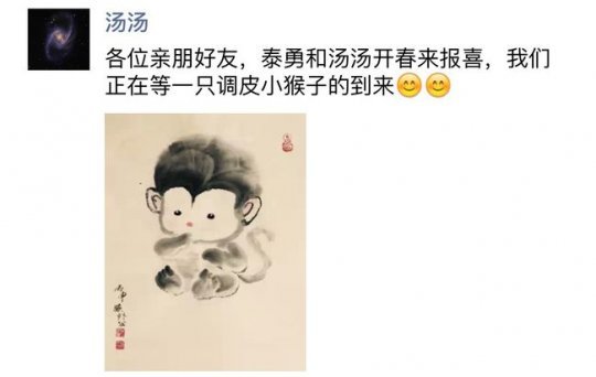 이어 “오늘 오후 탕웨이는 SNS에 화가인 아버지가 그려준 아기 원숭이 그림을 공개하며 원숭이 해에 새로운 가족을 만나게 된다는 소식을 친구들에게 전했습니다”라고 말했다.