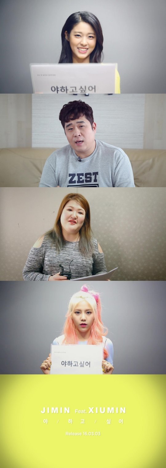 설현은 “야.하.고.싶어. 무슨 뜻일까요?”라며 웃음을 지어 보였고, AOA 크림 멤버인 유나·혜정·찬미는 “야! 라고 하고 싶어?”라고 대답했다. 개그맨 문세윤은 “‘식’이 빠졌다. 야식하고 싶어!”라며 폭소를 자아내는 등 티저를 통해 지민의 솔로 프로젝트를 응원했다.