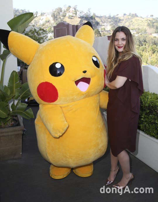 공개된 사진 속 드류 베리모어는 자신의 몸 크기만한 피카츄 인형과 나란히 서서 포즈를 취한 채 카메라를 향해 미소를 짓는 모습이다.