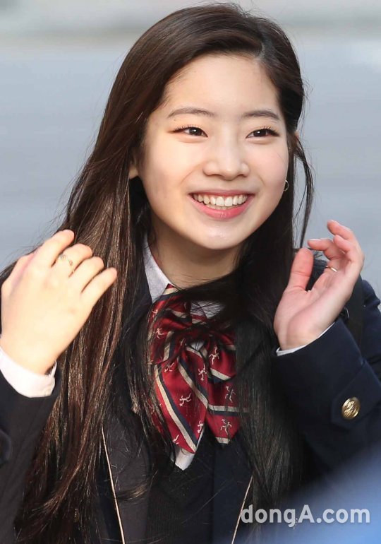 걸그룹 트와이스의 다현이 2일 오전 서울 송파구 한림연예예술고등학교에 등교를 하고 있다.