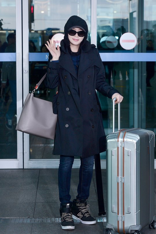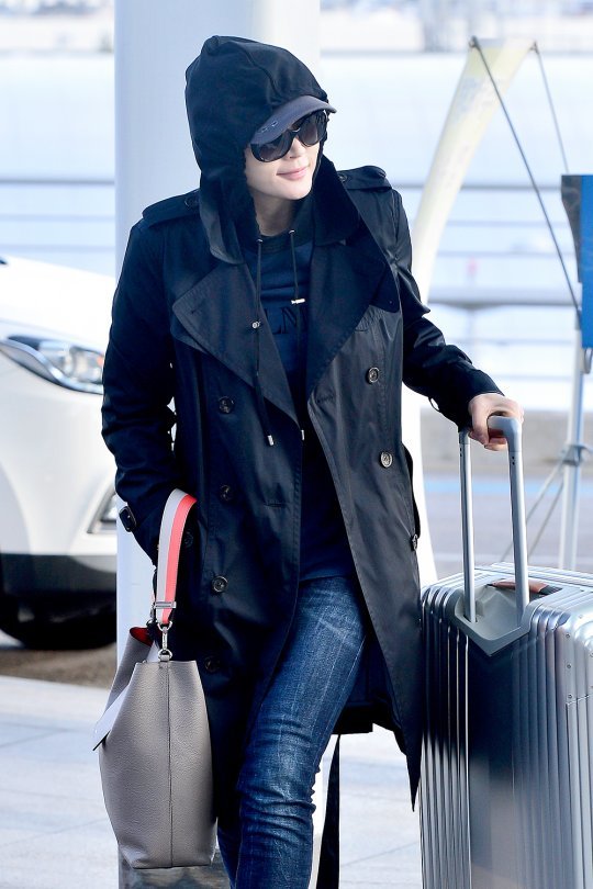 배우 김혜수의 시크한 공항 패션이 화제다.
