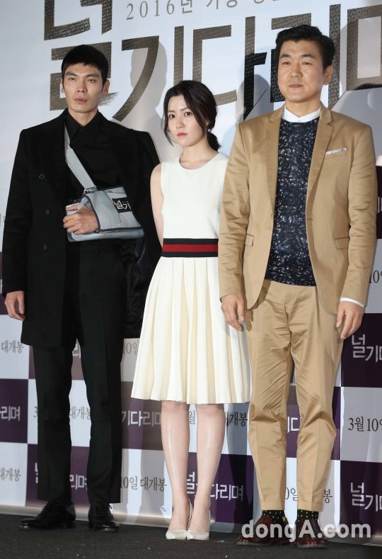 배우 김성오, 심은경, 윤제문(왼쪽부터)이 2일 오후 서울 CGV 왕십리에서 열린 영화 ‘널 기다리며’ 언론시사회에서 포토타임을 하고 있다.