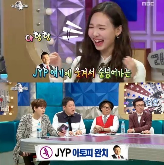 이날 MC들은 "JYP에 경사가 있다더라. 박진영의 아토피가 나았다더라"고 말문을 열었다.