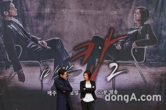 배우 김범(왼쪽)과 김성령이 4일 오후 서울 양천구 SBS 목동 방송센터에서 열린 드라마 ‘미세스 캅2’ 제작발표회에 참석해 포토타임을 하고 있다.