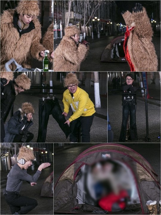 지난주 ‘1박 2일’에서는 하얼빈에 도착하자마자 야외취침 텐트를 발견한 멤버들의 당황스러운 얼굴과 함께 홀딱 벗은 알몸으로 텐트에 들어가 있는 한 멤버의 모습이 공개돼 눈길을 끌었다.