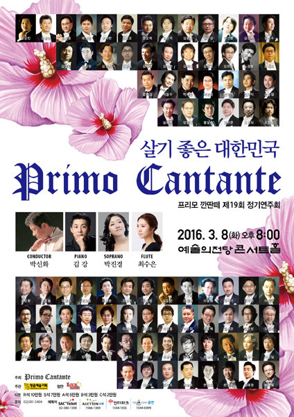 국내외 최정상급 80여명의 성악가들이 모여 최고의 앙상블을 자랑하는 프리모 깐딴떼의 제19회 정기연주회가 3월 8일(화) 오후 8시 서울 서초동 예술의전당 콘서트홀에서 열린다.
