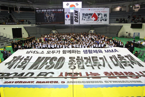 이 열기의 진원지는 제1회 KFSO 종합격투기 대축제. 사단법인 대한격투스포츠협회(Korea Fight Sports Organization, 협회장 정문홍)가 마련한 전국 아마추어 격투기 축제다. 이날 행사에는 전국 격투기 체육관에서 훈련하고 있는 아마추어 수련생 480명 참가하는 등 내·외국인 관계자 1200여명이 운집했다. 3분 1라운드 단판 맞대결의 경기였지만 참가자들은 프로선수 못지않게 진지하게 경기에 임했다.