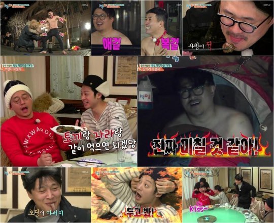 결과는 큰 웃음이었다. 승부욕에 활활 불타오른 김종민은 추위 속에서 알몸을 노출하게 된 상황에서도 멈출 줄을 몰랐고, 자신도 모르게 나오는 ‘보’ 자세로 계속 차태현에게 졌다.