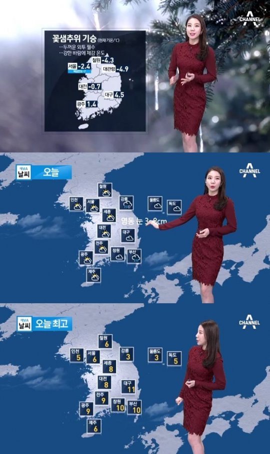 낮 최고 기온은 어제보다 2~3도 가량 낮은 서울 6도, 인천 6도 대전 8도, 세종 8도, 부산 10도, 광주 9도, 대구 11도, 철원 6도, 강릉 3도, 제주 6도로 전망된다.