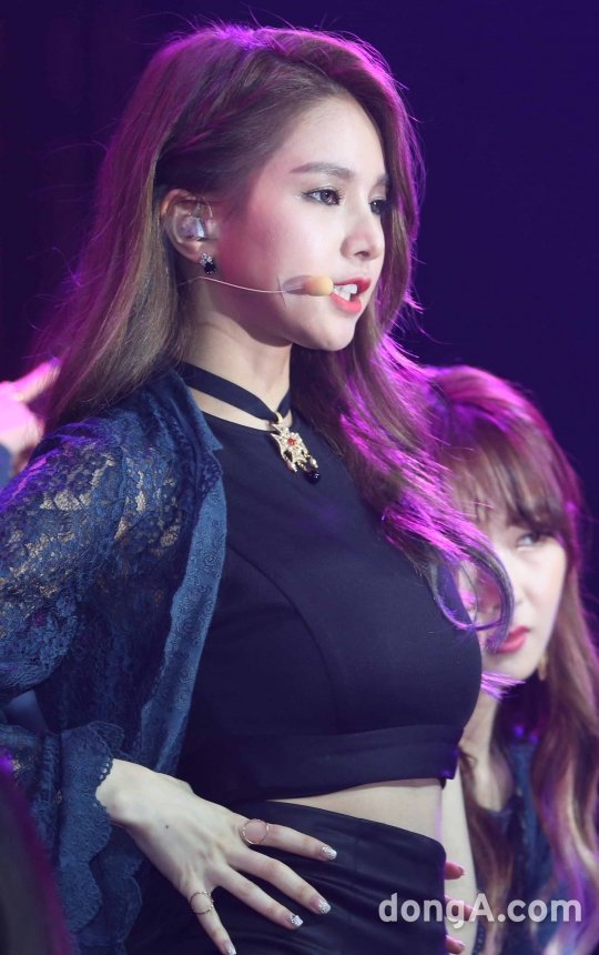 피에스타의 재이가 9일 오전 서울 마포구 YES24 무브홀에서 열린 두번째 미니앨범 ‘어 델리케이트 센스(A Delicate Sense)’ 발매 기념 쇼케이스에서 화려한 무대를 선보이고 있다.