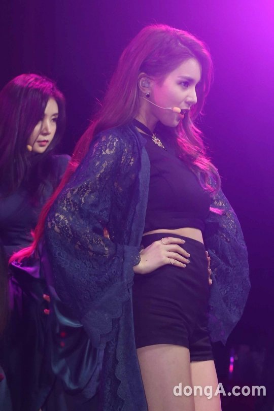 피에스타의 재이가 9일 오전 서울 마포구 YES24 무브홀에서 열린 두번째 미니앨범 ‘어 델리케이트 센스(A Delicate Sense)’ 발매 기념 쇼케이스에서 화려한 무대를 선보이고 있다.