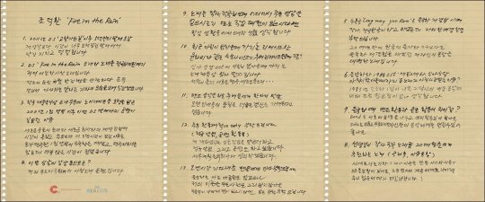 기타리스트 조덕환이 친필로 작성한 인터뷰가 9일 오후 C9엔터테인먼트 공식 SNS를 통해 공개되었다.