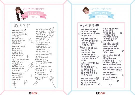 티오피미디어는 9일 오후 업텐션 공식 홈페이지와 SNS를 통해 유주(여자친구)+선율(업텐션)의 ‘보일 듯 말 듯’ 손글씨 전체 가사를 공개했다.