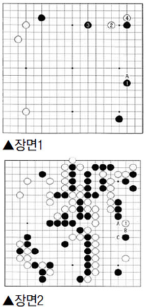 <장면1> 흑1과 <장면2> 백1은 인간과 기계의 신수, 감각의 대결이었다. 이날 대국은 집 수의 많고 적음을 떠나 ‘인간 측’이 과시해 온 직관과 감각의 승부이기도 했던 것이다. 첫 번째 대결에서는 인간이 무참히 패했다. 2국이 열리기까지 남은 시간은 20시간. 이세돌은 과연 달라져서 돌아올 수 있을까.